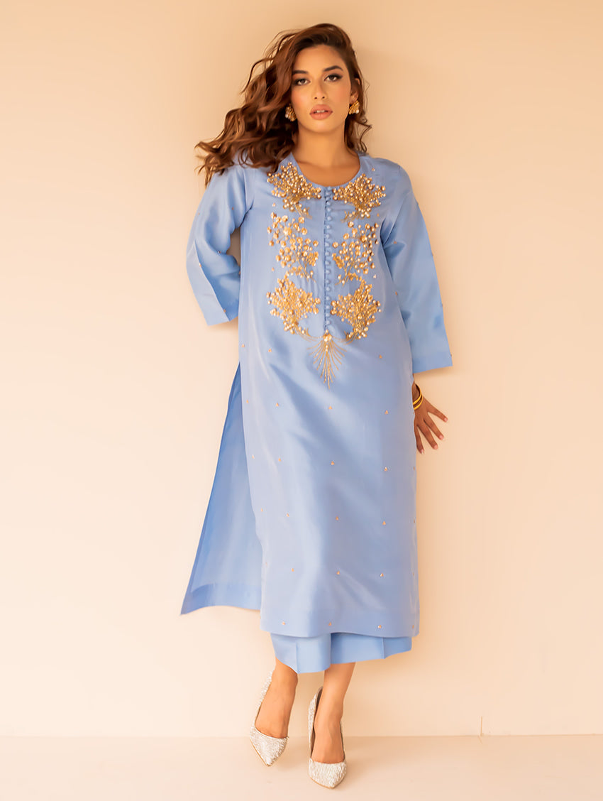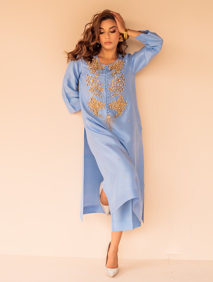 "Get ready to soar with Celeste - the vibrant sky blue color that will make you feel like you're on cloud nine. Bring a pop of color to your day and stand out with this playful and fun hue. (Warning: may cause uncontrollable urge to stare at the sky.)"