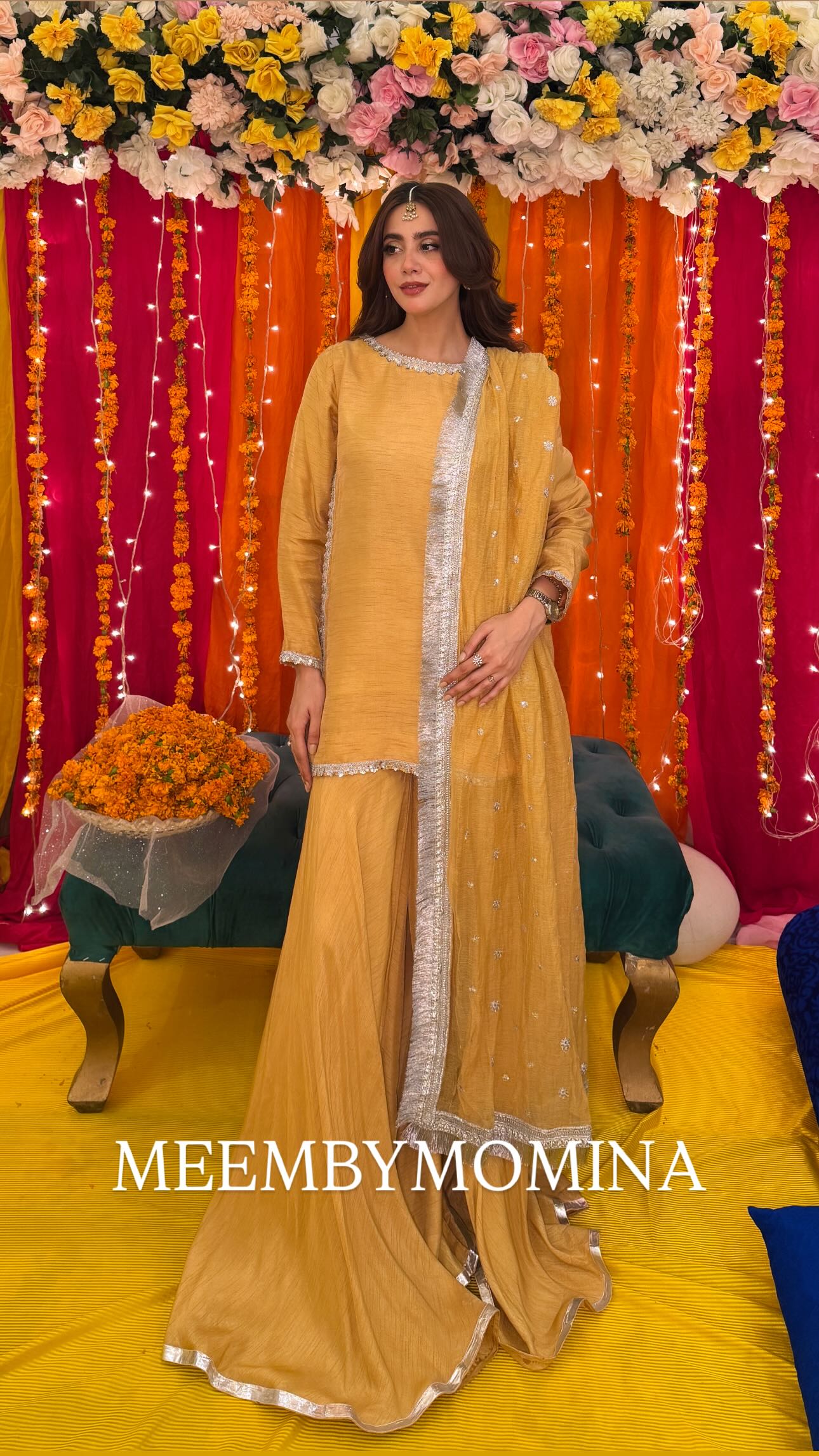 Expertly crafted from lightweight chiffon fabric, the MINA three piece set includes a dress with an attached inner lining and a chiffon dupatta adorned with kiran lace. Ensuring both comfort and style, this set is perfect for any special occasion.
